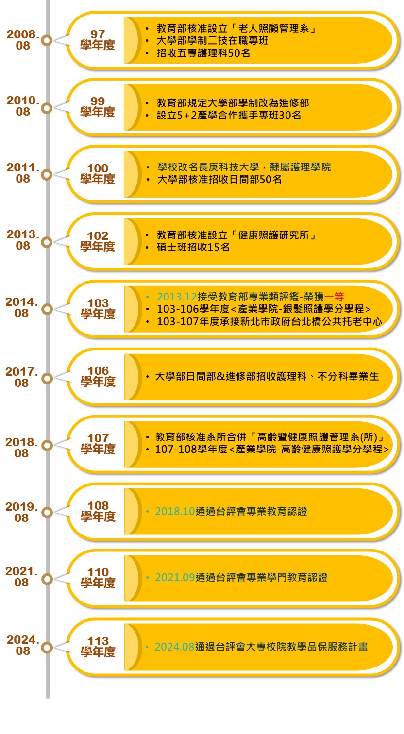 97學年度大學部學制二技在職專班、教育部核准設立「老人照顧管理系」招收護理科